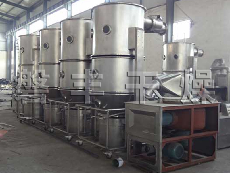 制藥工業中的造粒:片劑顆粒、沖劑顆粒、膠囊劑顆粒。● 食品工業的造粒:可可、 咖啡、奶粉、顆粒果汁、調味品等● 其他行業的造粒:農藥、飼料、化肥、顏料、染料化工 等。● 粉狀或顆粒狀濕物料的干燥。● 包衣:顆粒、丸劑保護層、備色、緩釋、薄膜、腸溶 包衣等。
